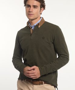 River Woods Men’s Custom Fit Sporty Stretch Pique Polo Olive Green | Khaki