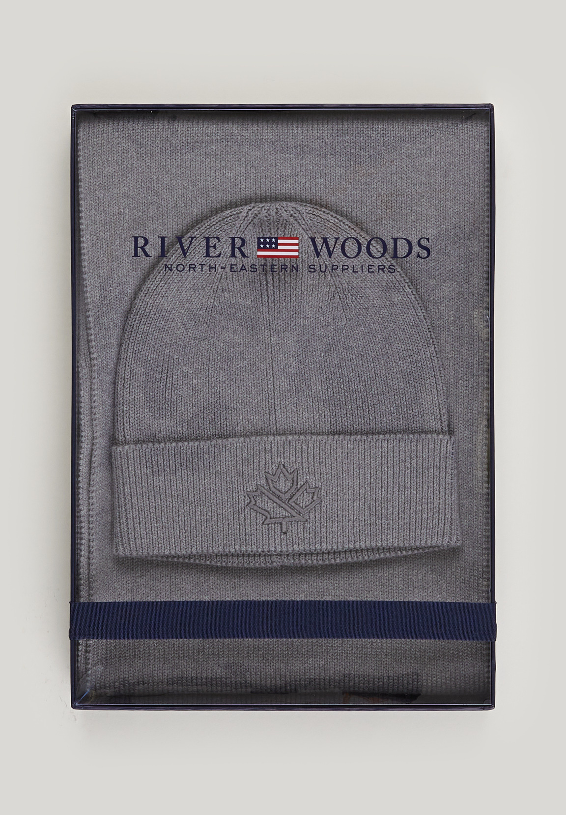 River Woods Box Scarf And Hat Grey Mix For Men | Grey