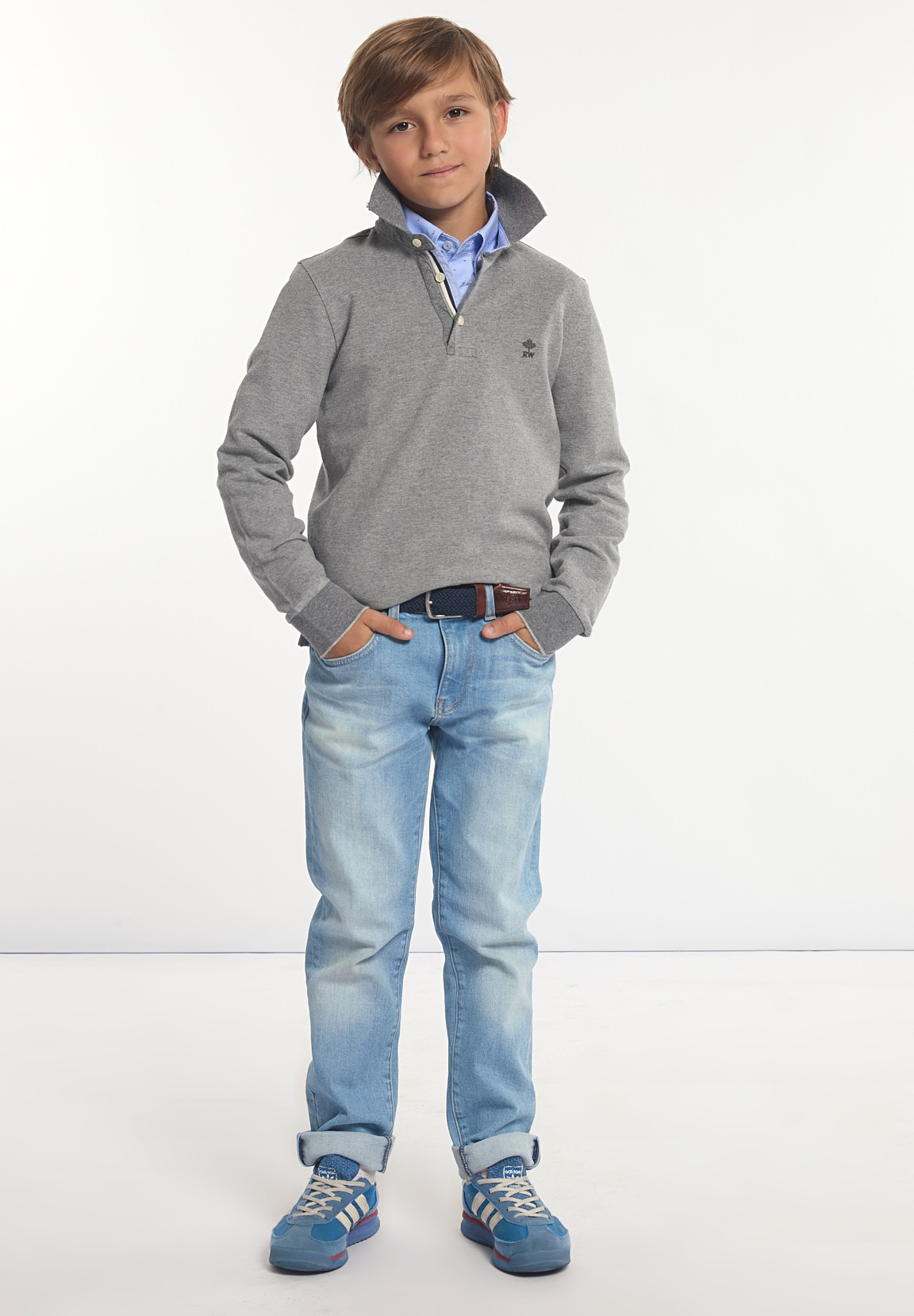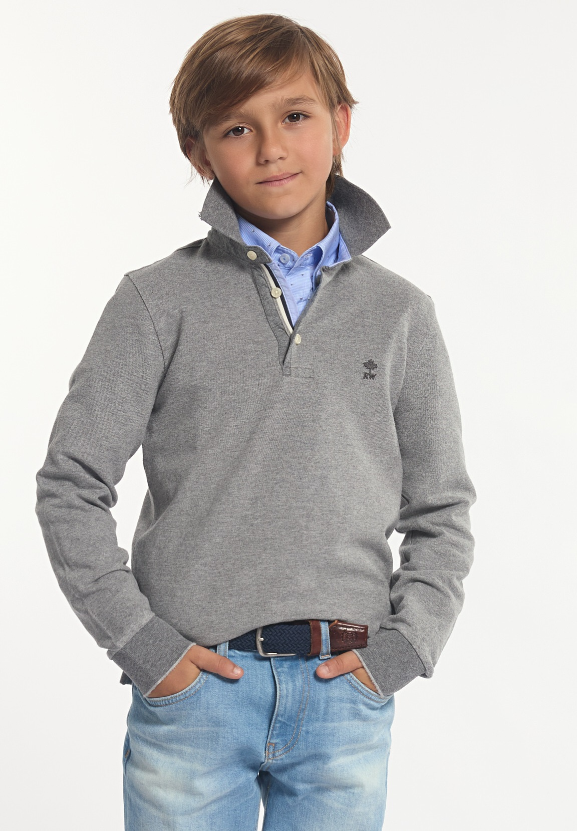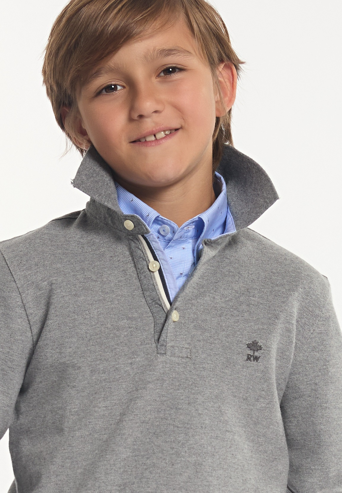 River Woods Boys Custom Fit Silky Fancy Pique Polo Zinc Mix | Grey