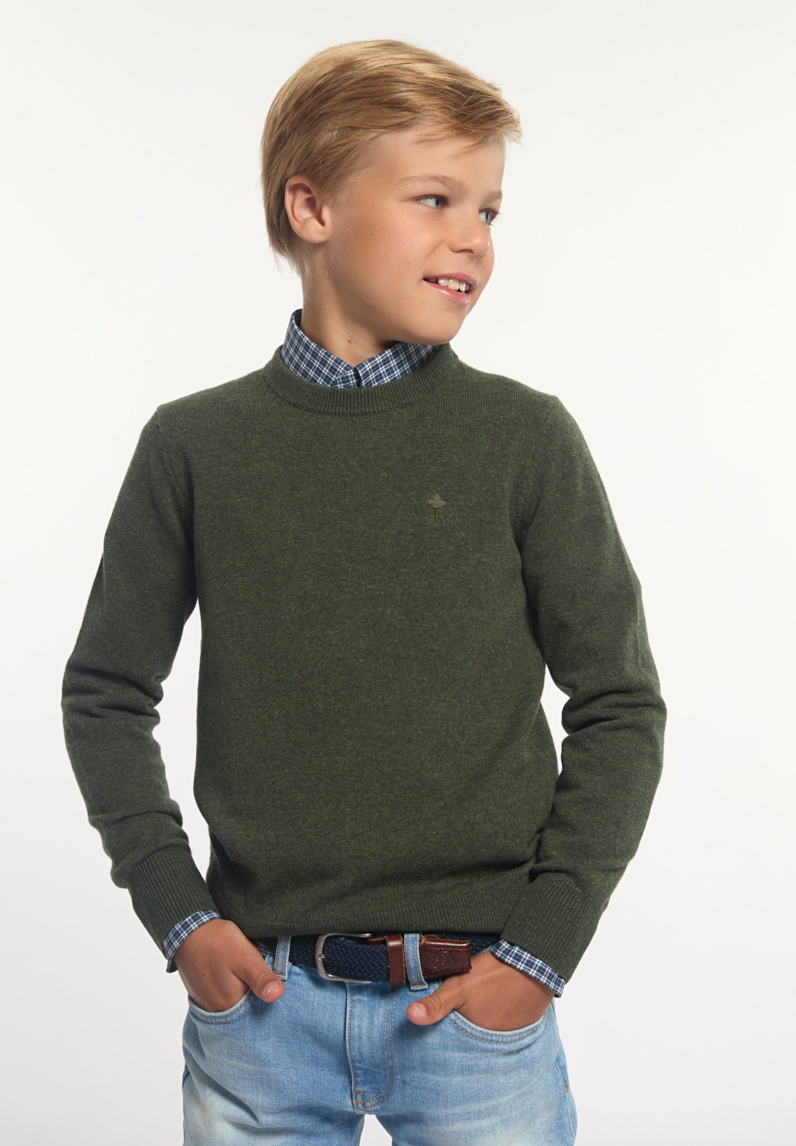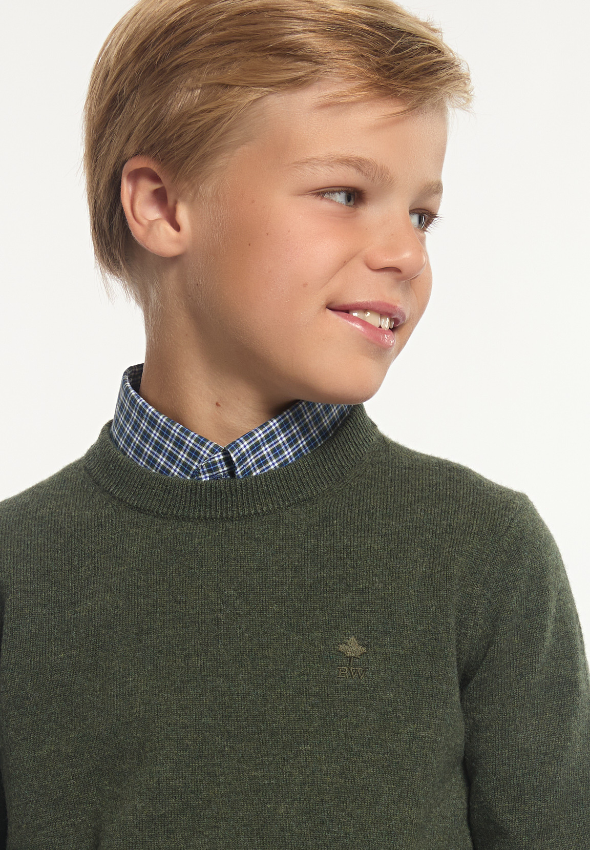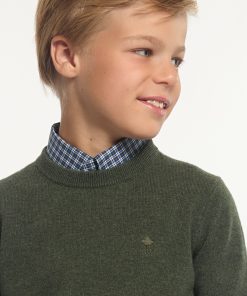 River Woods Boys Merino Wool Crew Neck Sweater Moss | Green