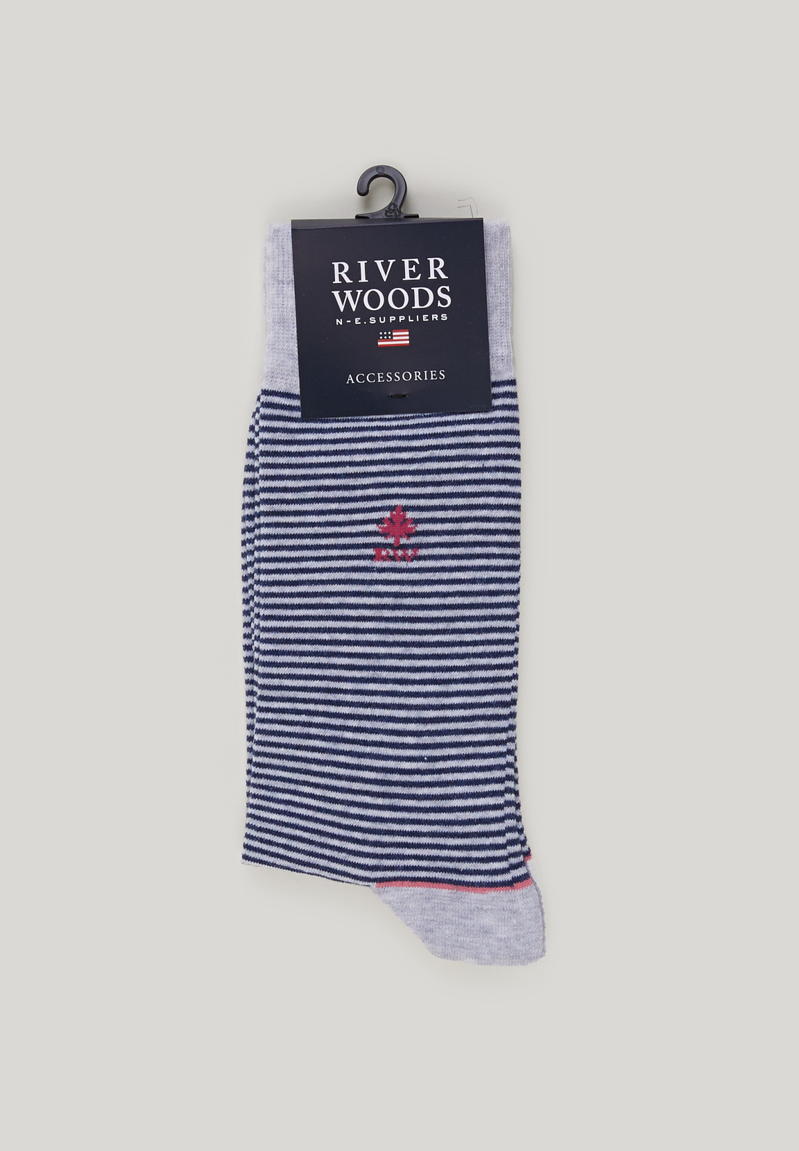 River Woods Men’s Cotton Striped Socks Lt Grey Mix/indigo | Multi
