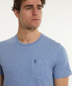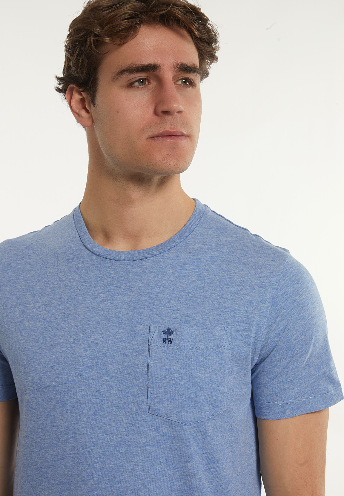 River Woods Men’s Custom Fit Basic Pima Cotton T-shirt Chest Pocket Oase Mix | Blue