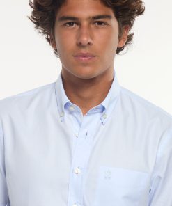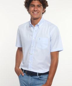 River Woods Men’s Custom Fit Uni Shirt Chest Pocket Short Sleeves Blue | Blue