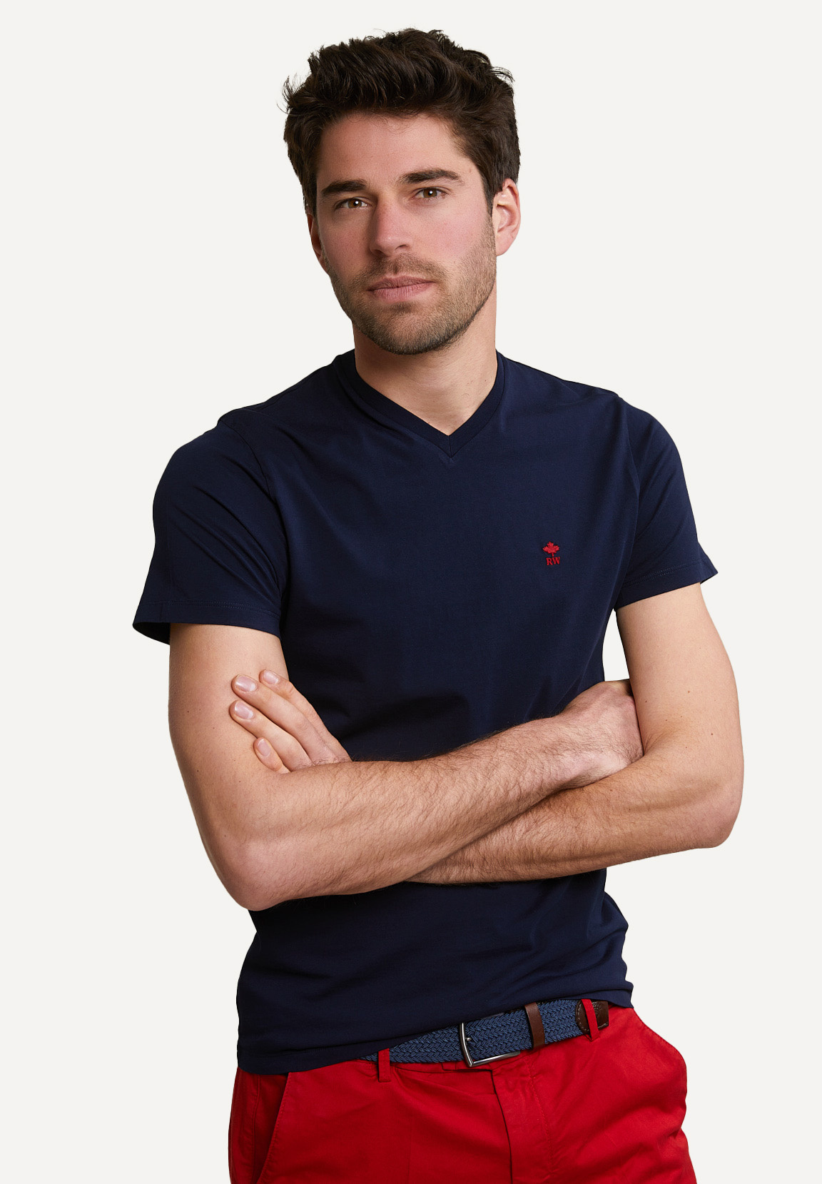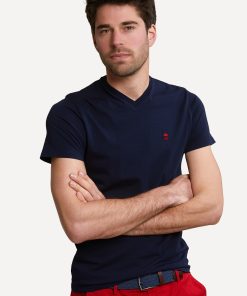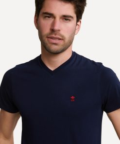 River Woods Men’s Slim Fit Basic Pima Cotton V-neck T-shirt Navy | Blue