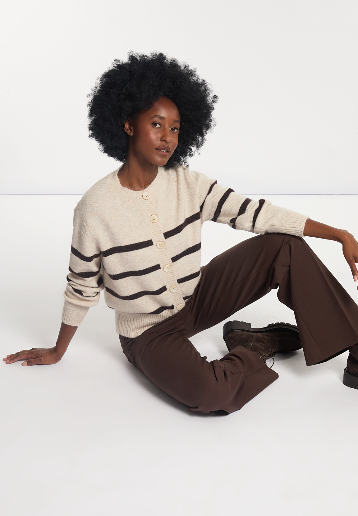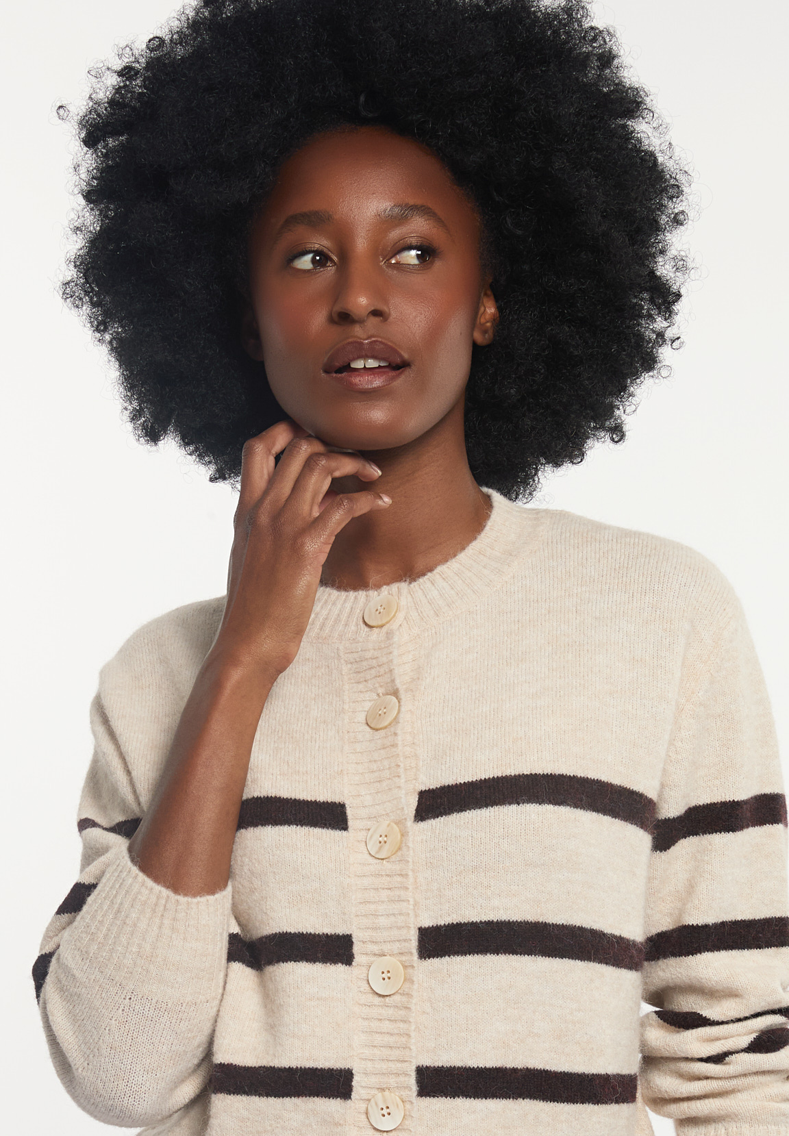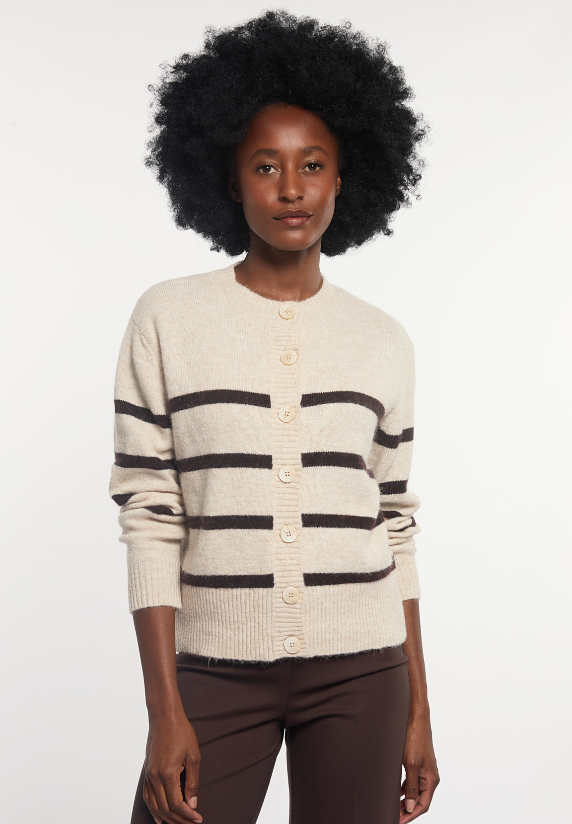 River Woods Women’s Alpaca-wool Buttoned Striped Cardigan Beige/brown | Beige