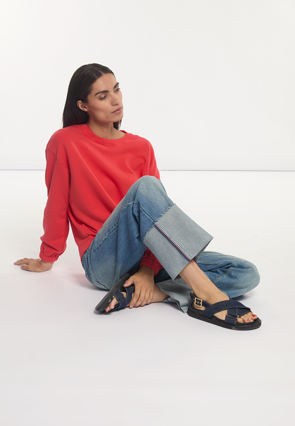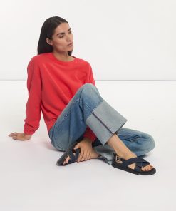 River Woods Women’s Cotton Crew Neck Sweater Long Sleeves Red | Red