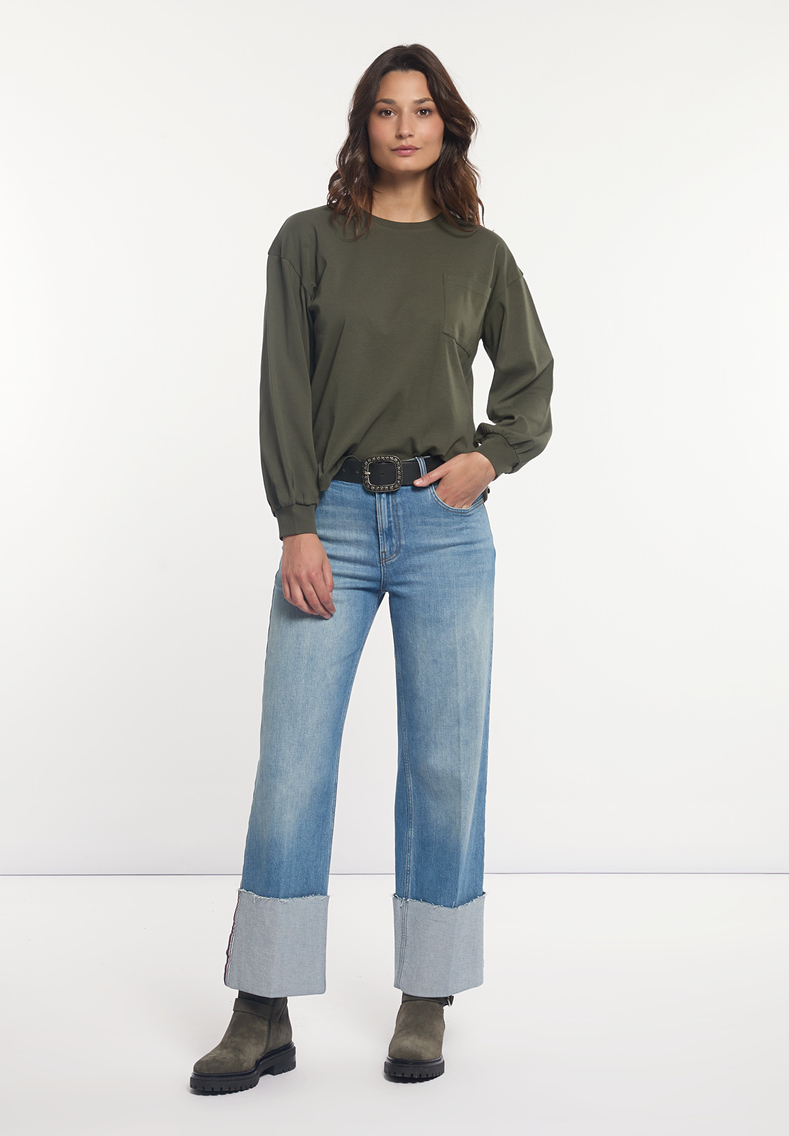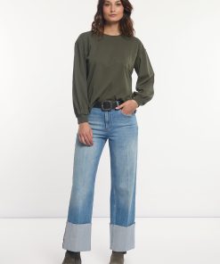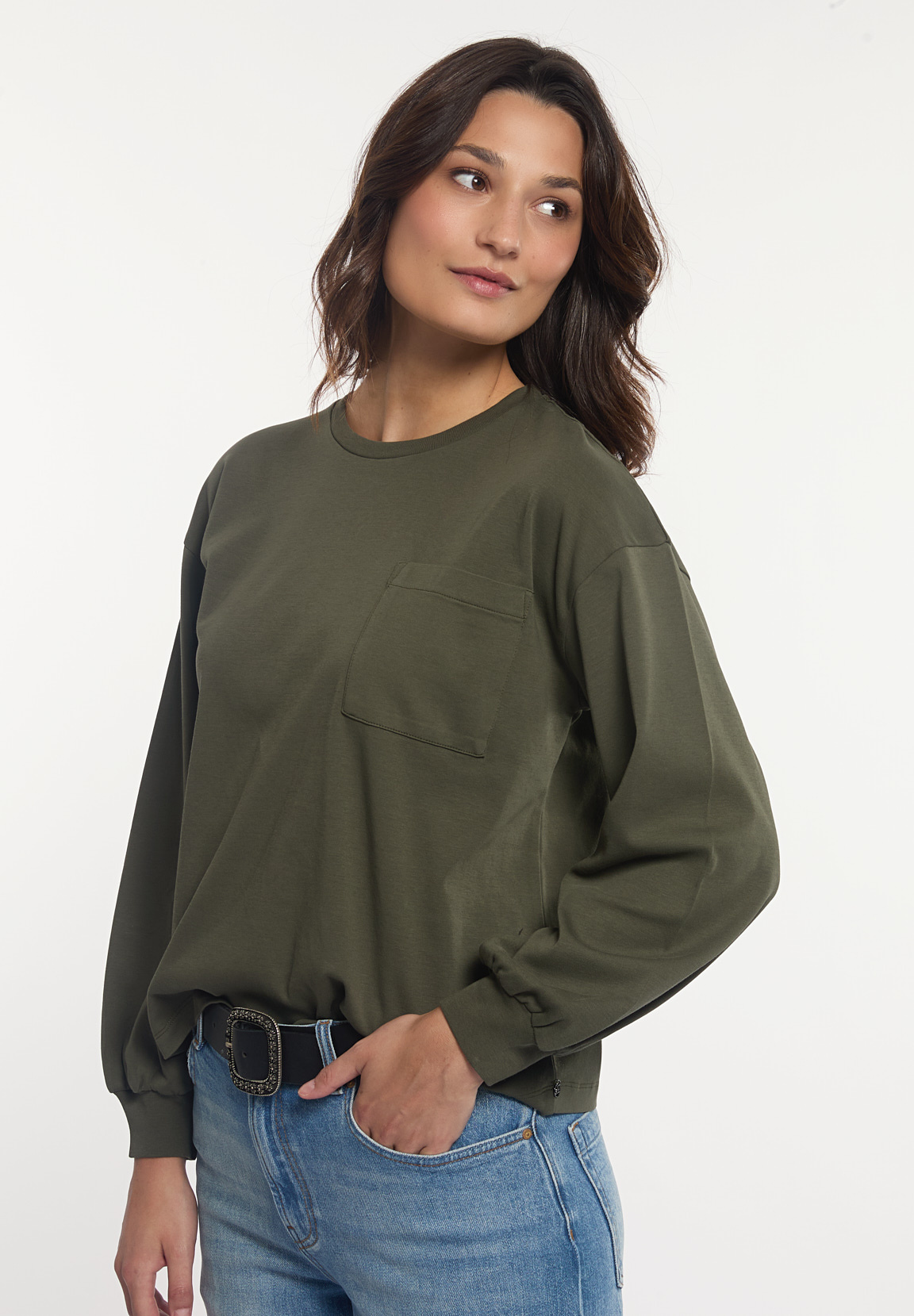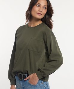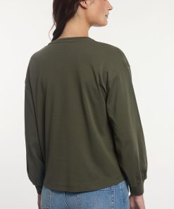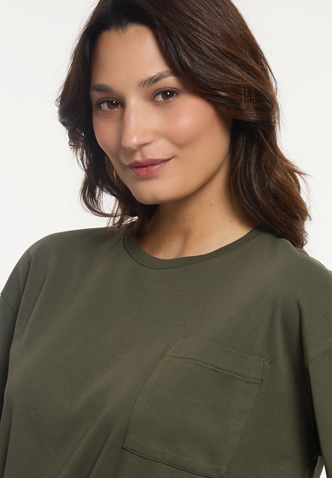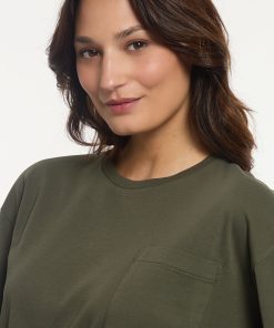 River Woods Women’s Cotton Crew Neck T-shirt Chest Pocket Khaki | Green