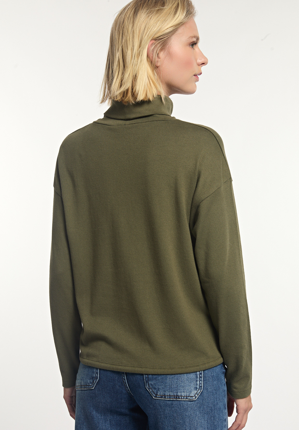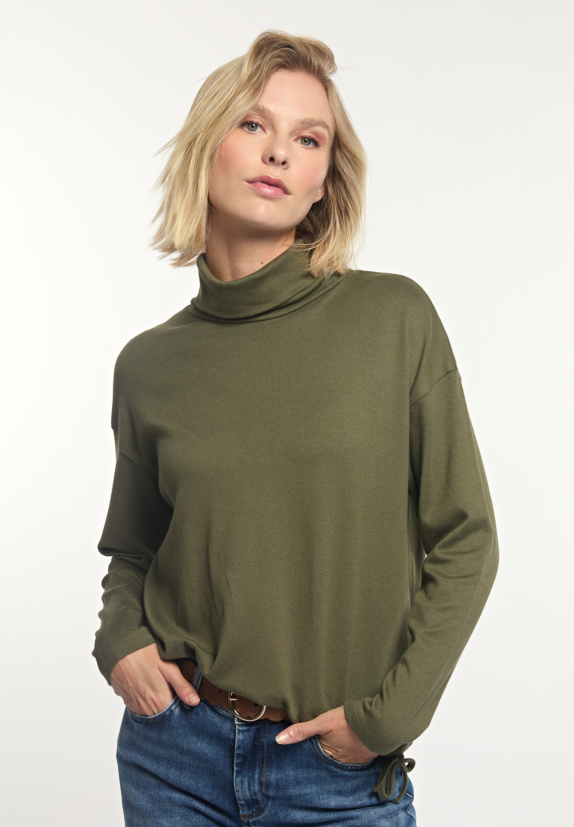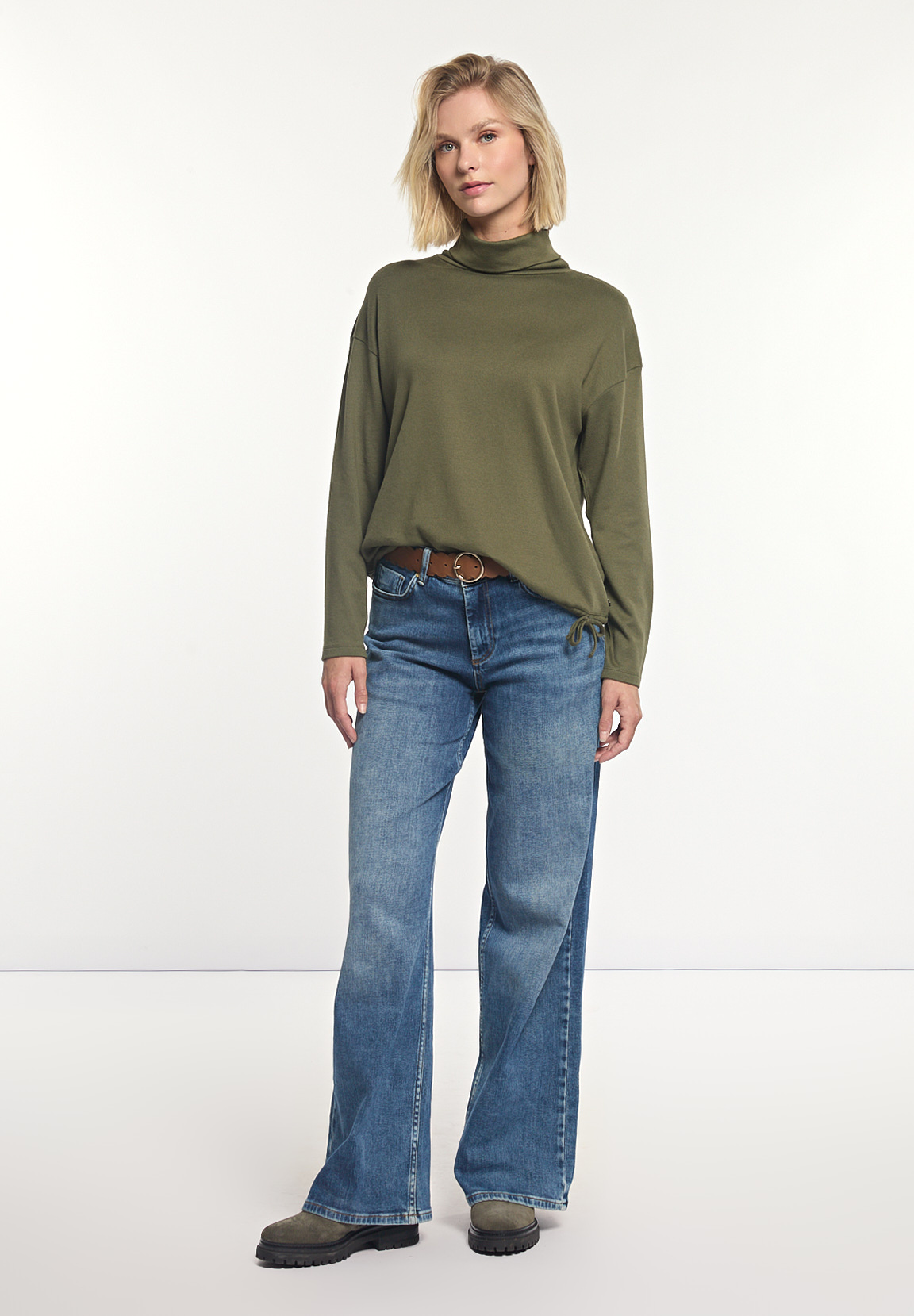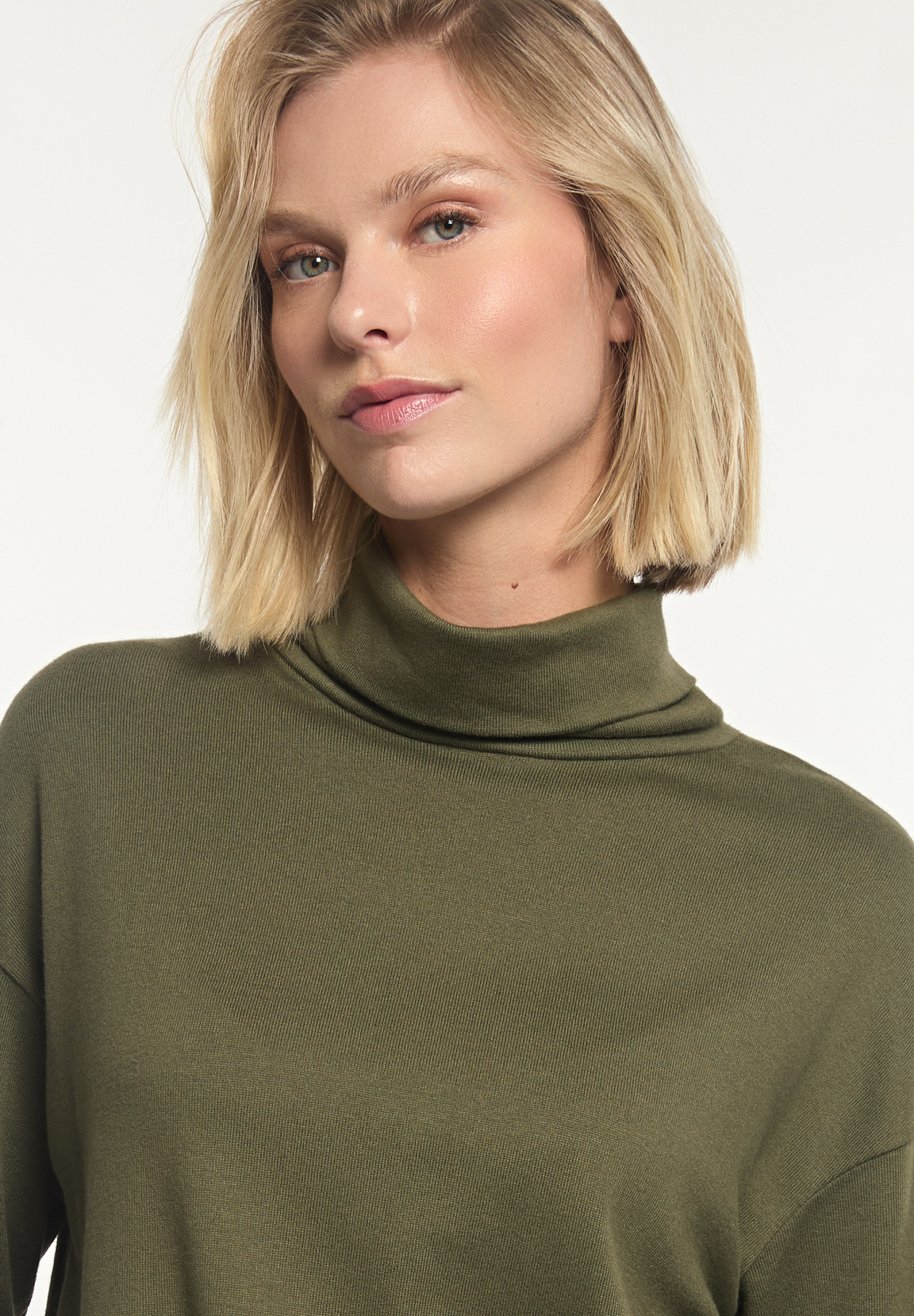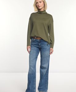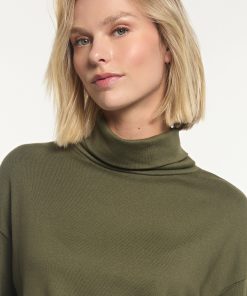 River Woods Women’s Cotton Loose Roll Neck T-shirt With Drawstring Khaki | Green