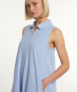 River Woods Women’s Cotton Sleeveless Sponge Polo Dress Blue | Blue