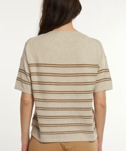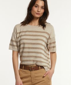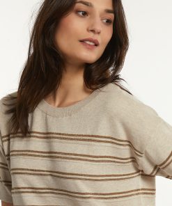 River Woods Women’s Cotton Striped Glitter Sweater Short Sleeves Beige | Beige