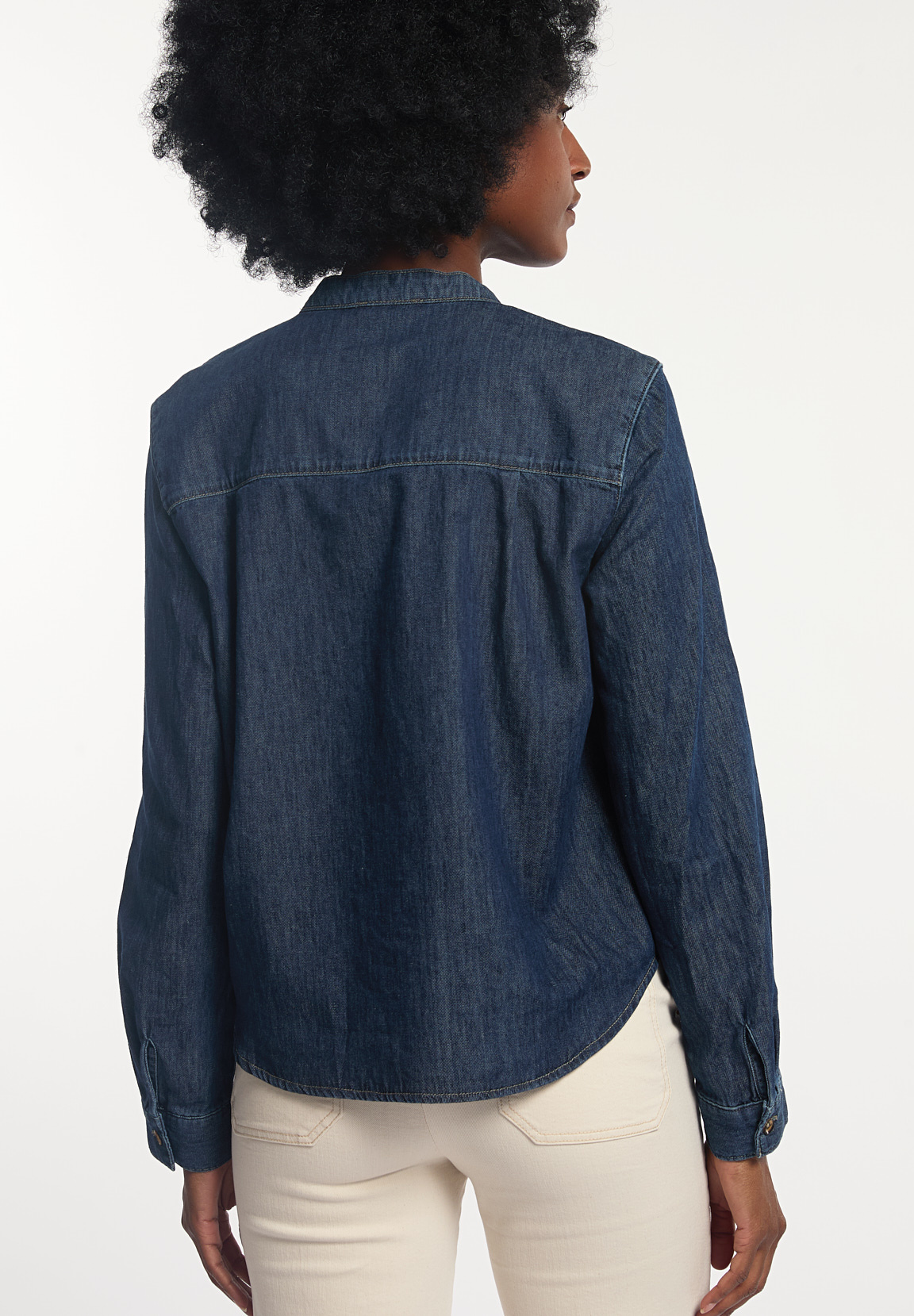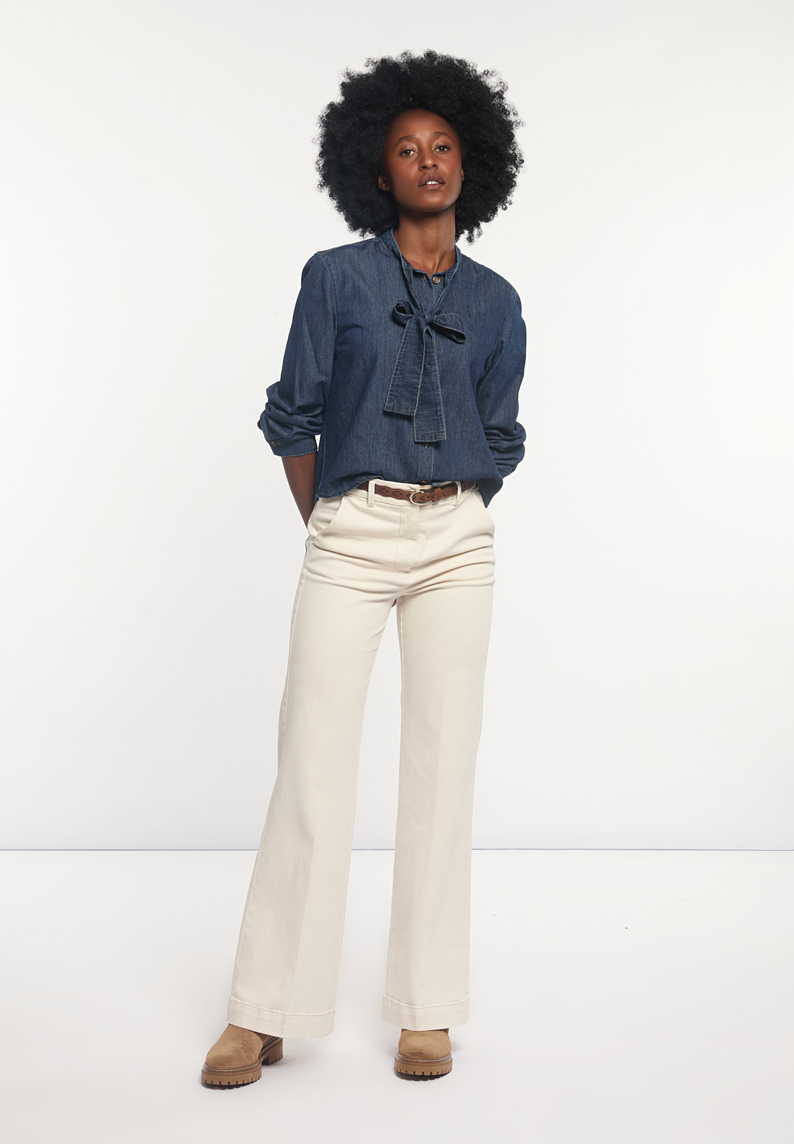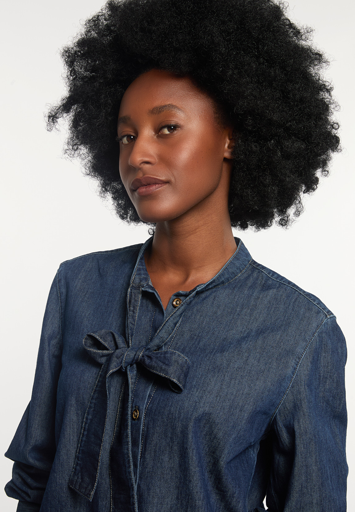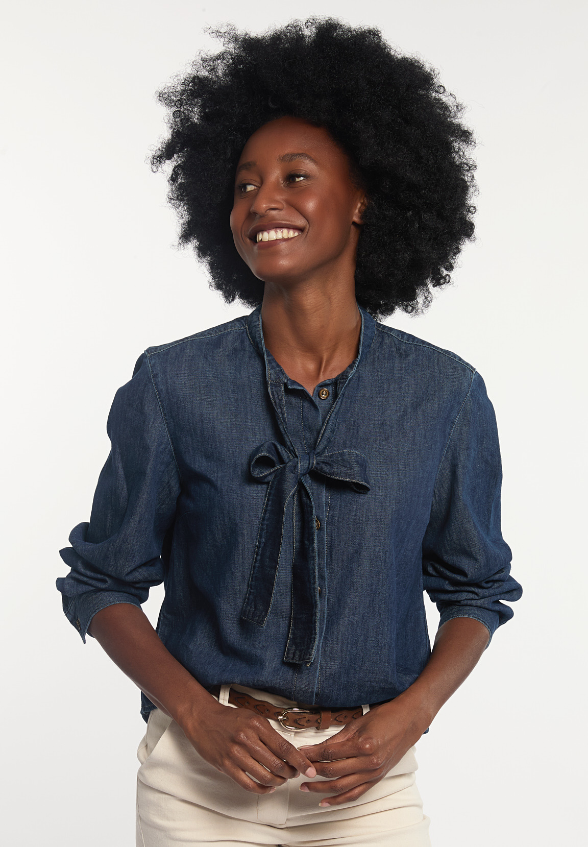 River Woods Women’s Denim Buttoned Blouse With Bow Blue | Denim