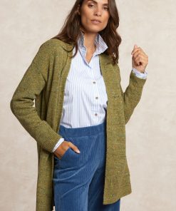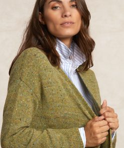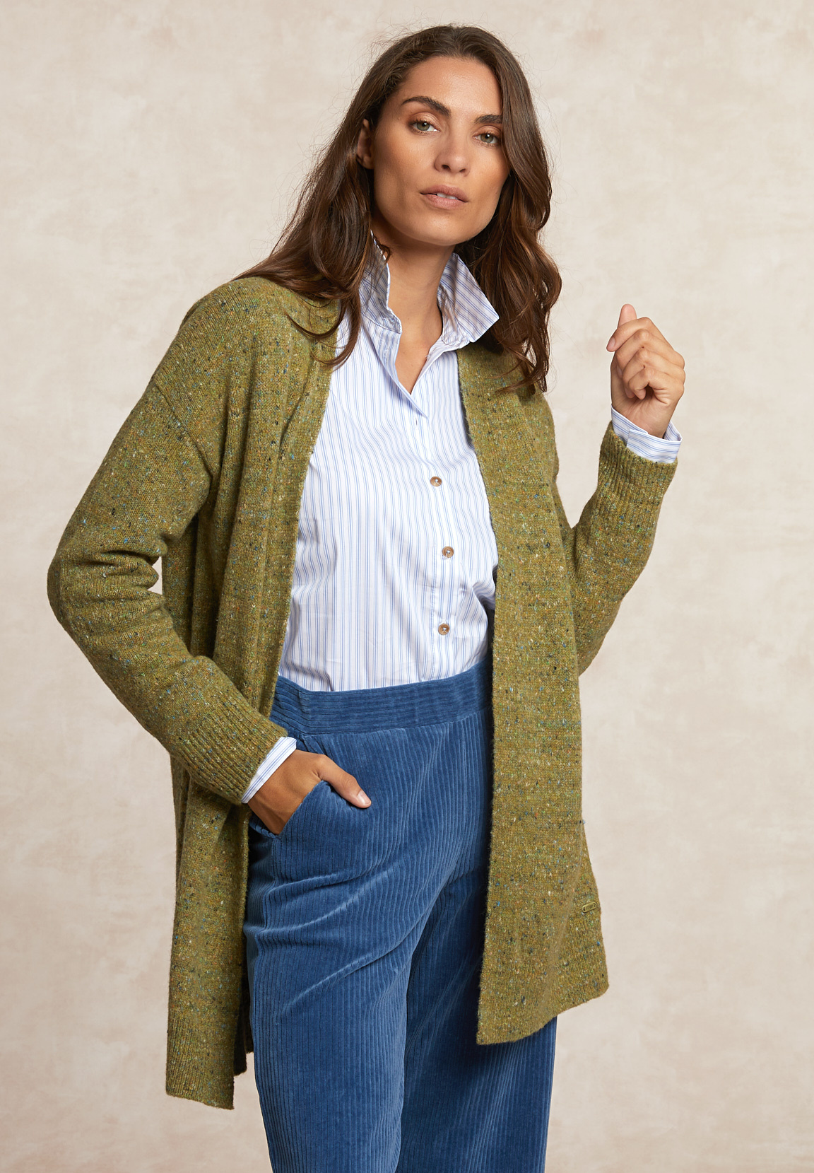 River Woods Women’s Long Dotted V-neck Cardigan Olive Green | Green