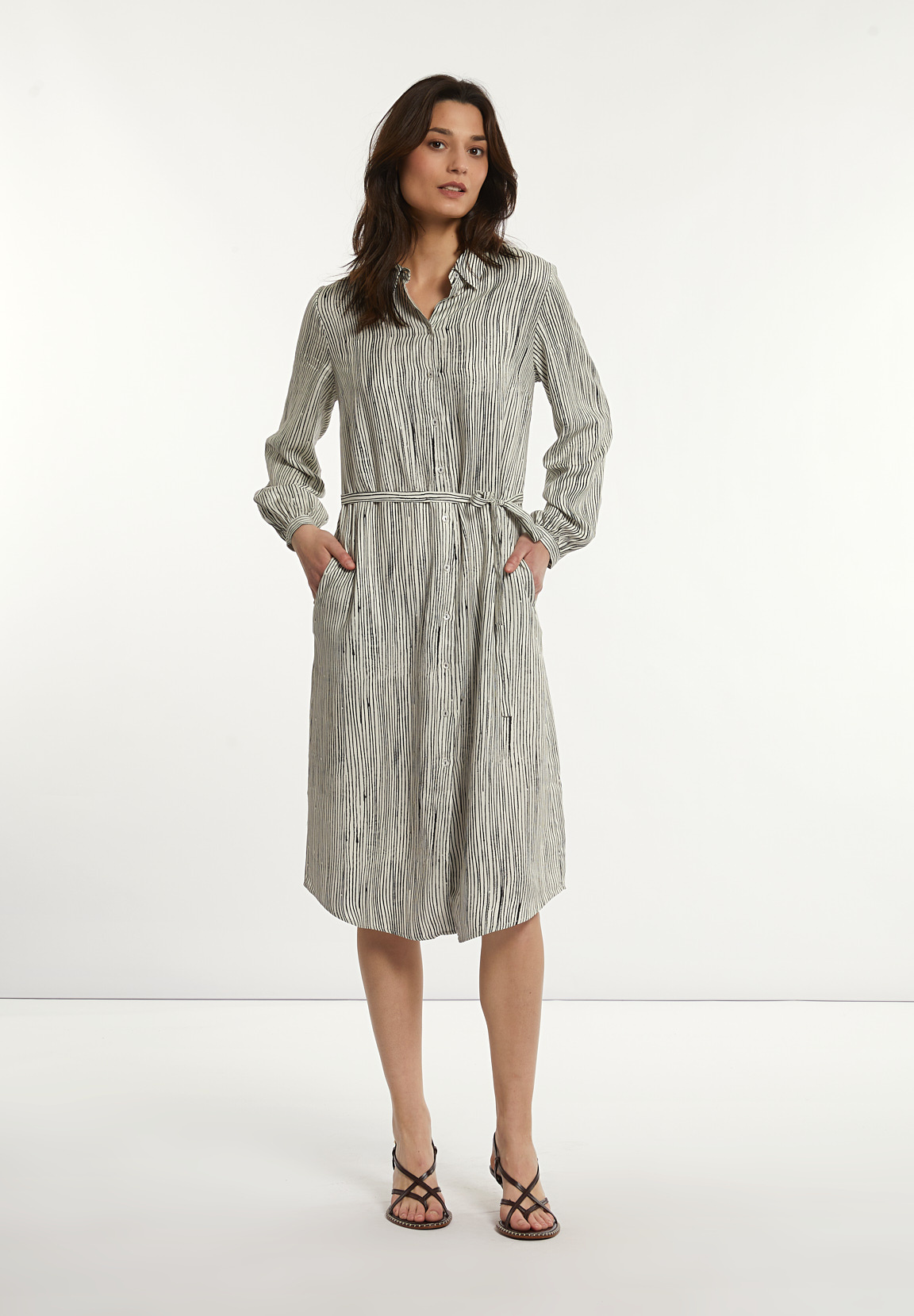 River Woods Women’s Loose Striped Belted Dress Black/white | Black