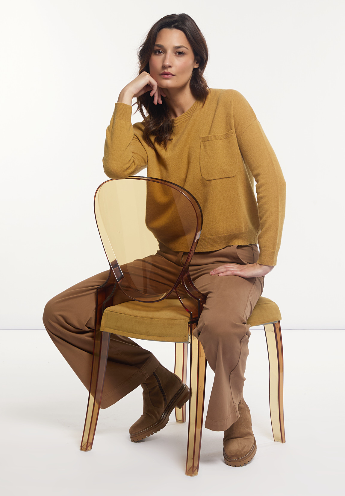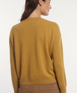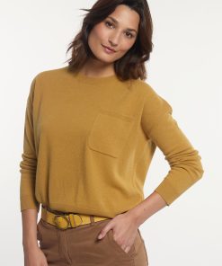 River Woods Women’s Merino Wool Basic Crew Neck Sweater Chest Pocket Yellow | Yellow