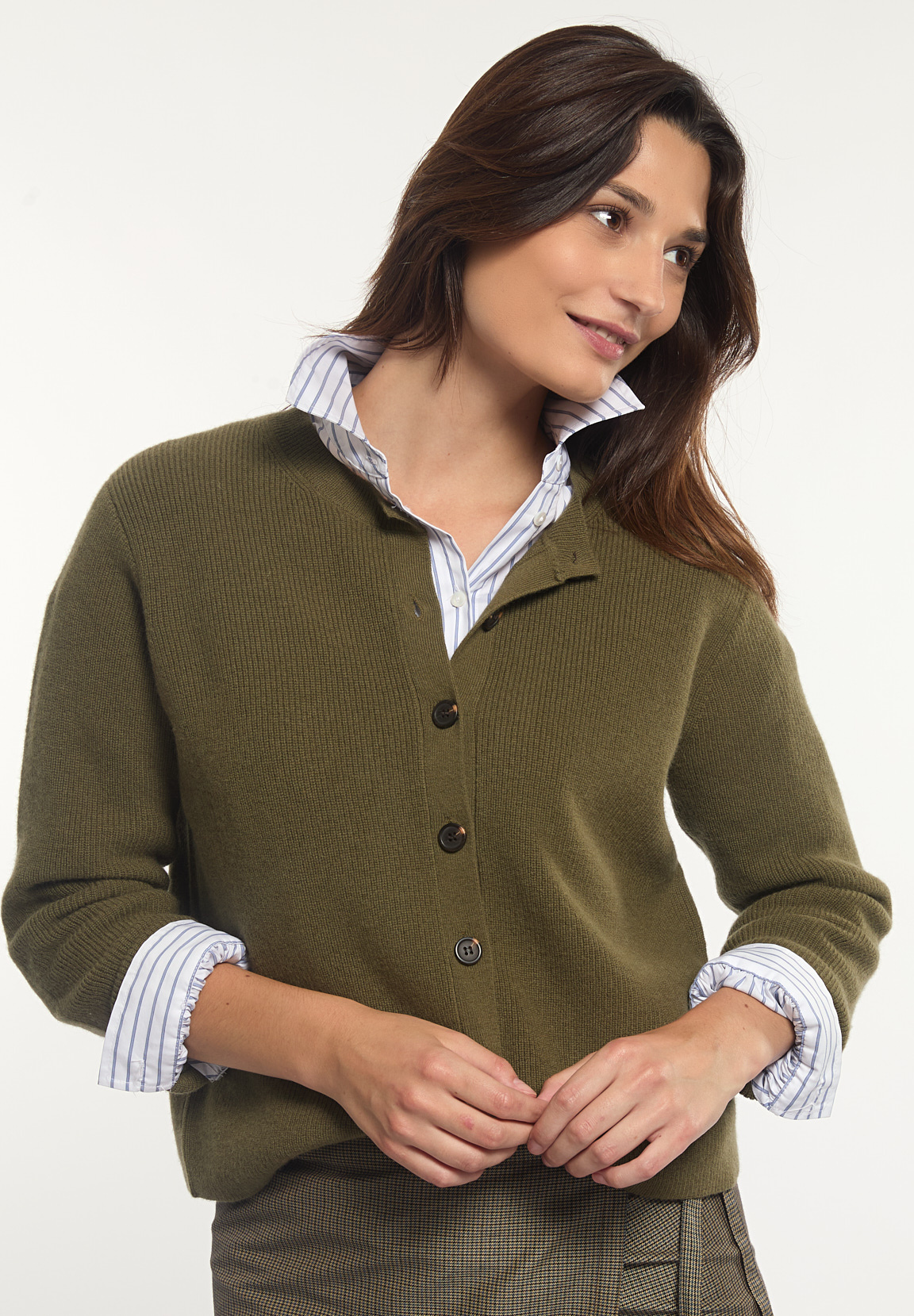River Woods Women’s Merino Wool Crew Neck Cardigan Green | Green