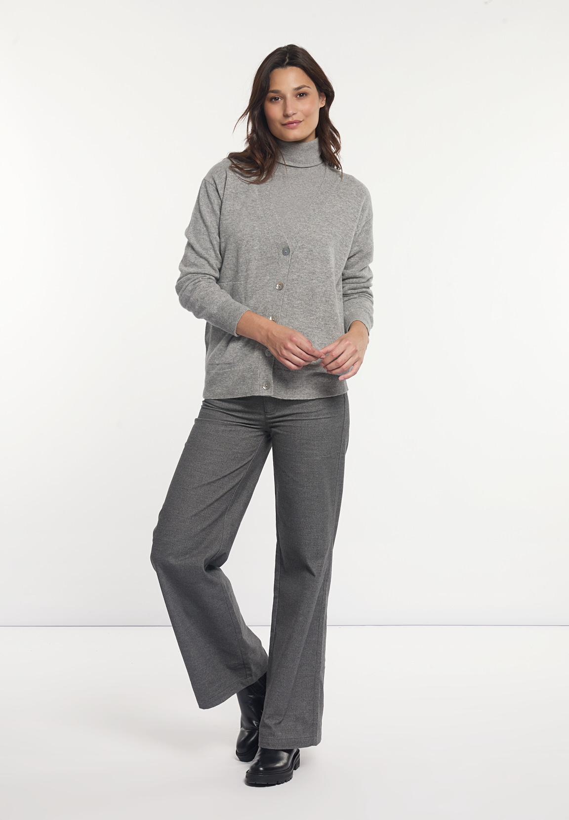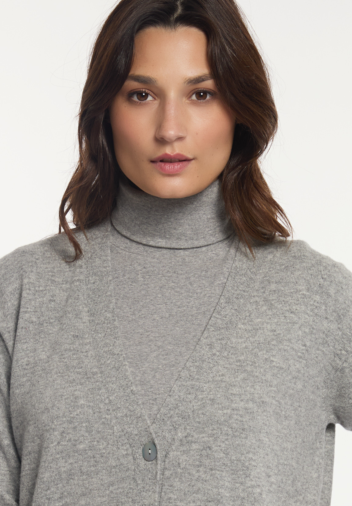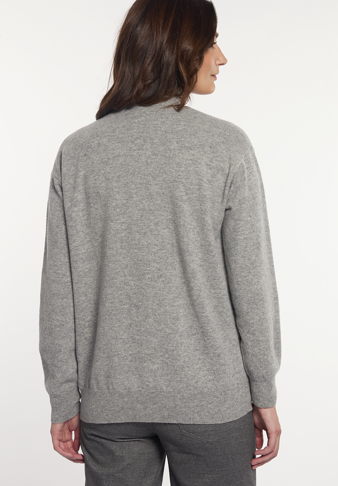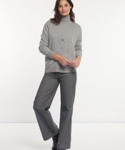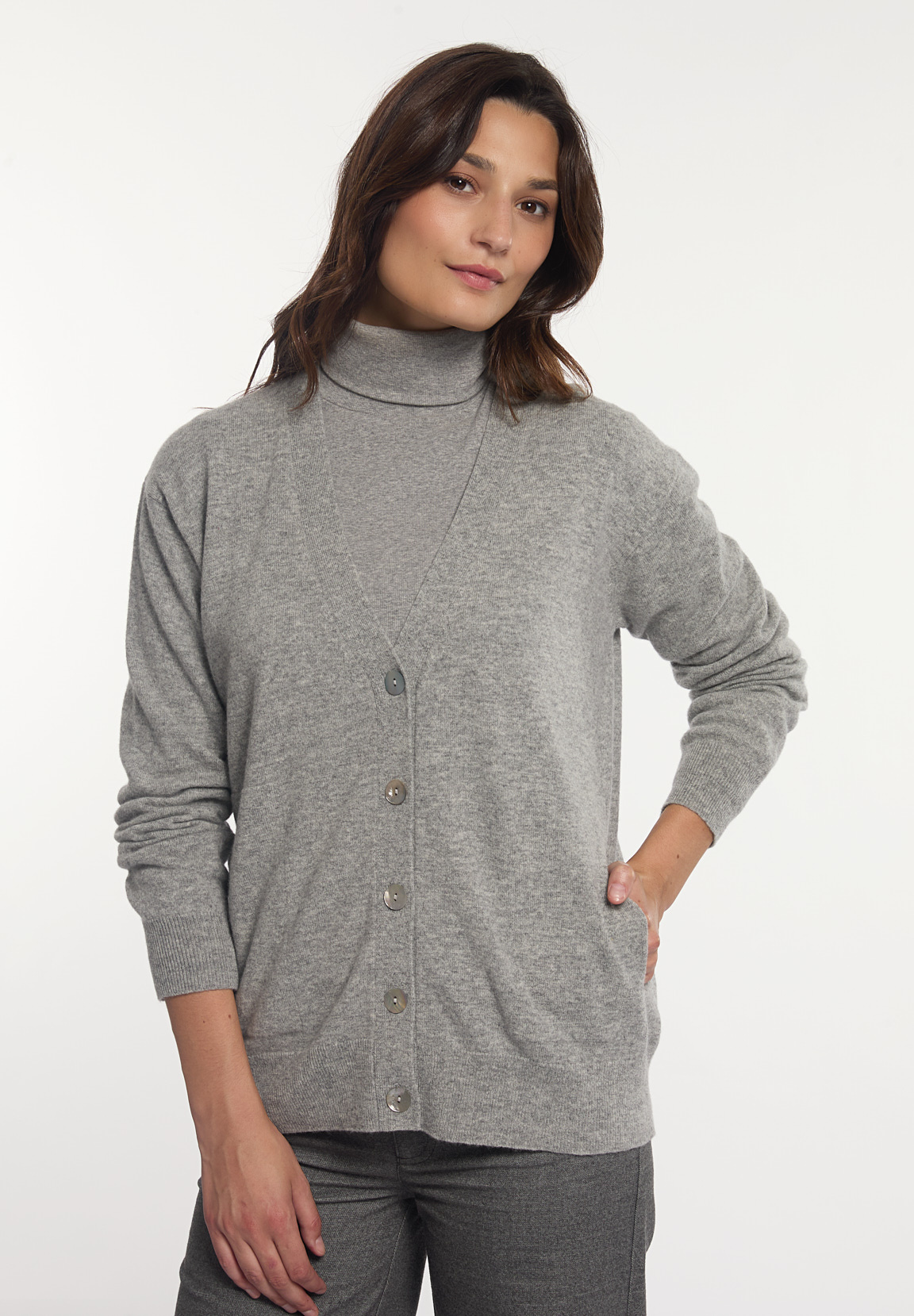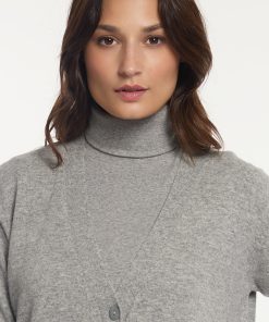 River Woods Women’s Merino Wool Loose V-neck Cardigan Applied Pockets Grey | Grey