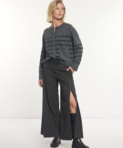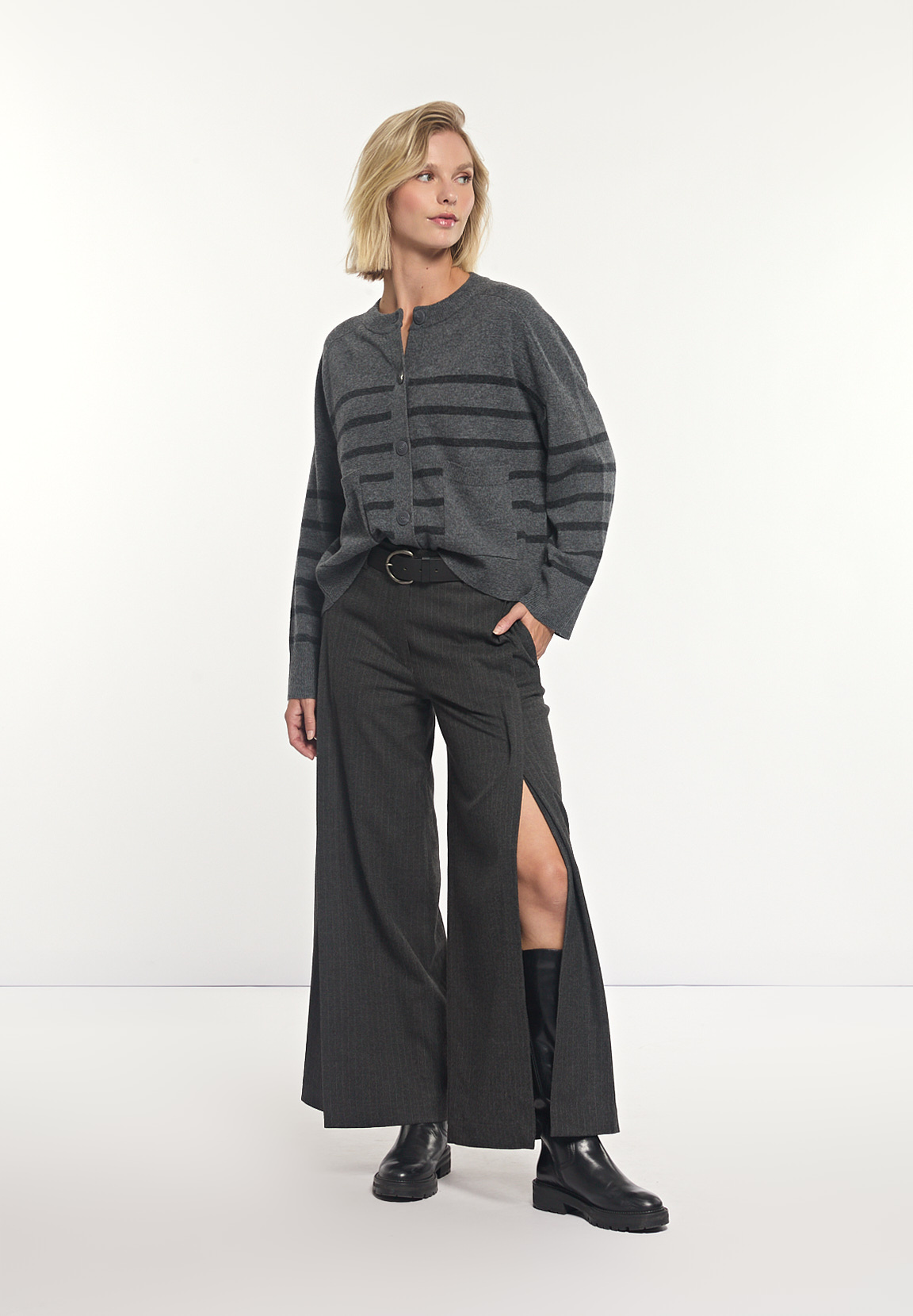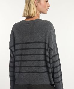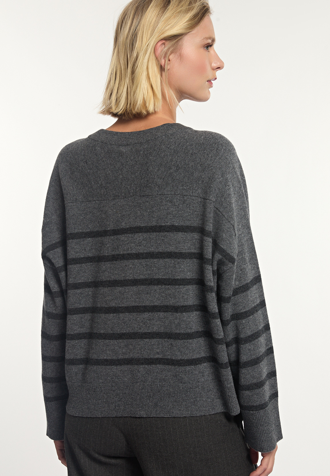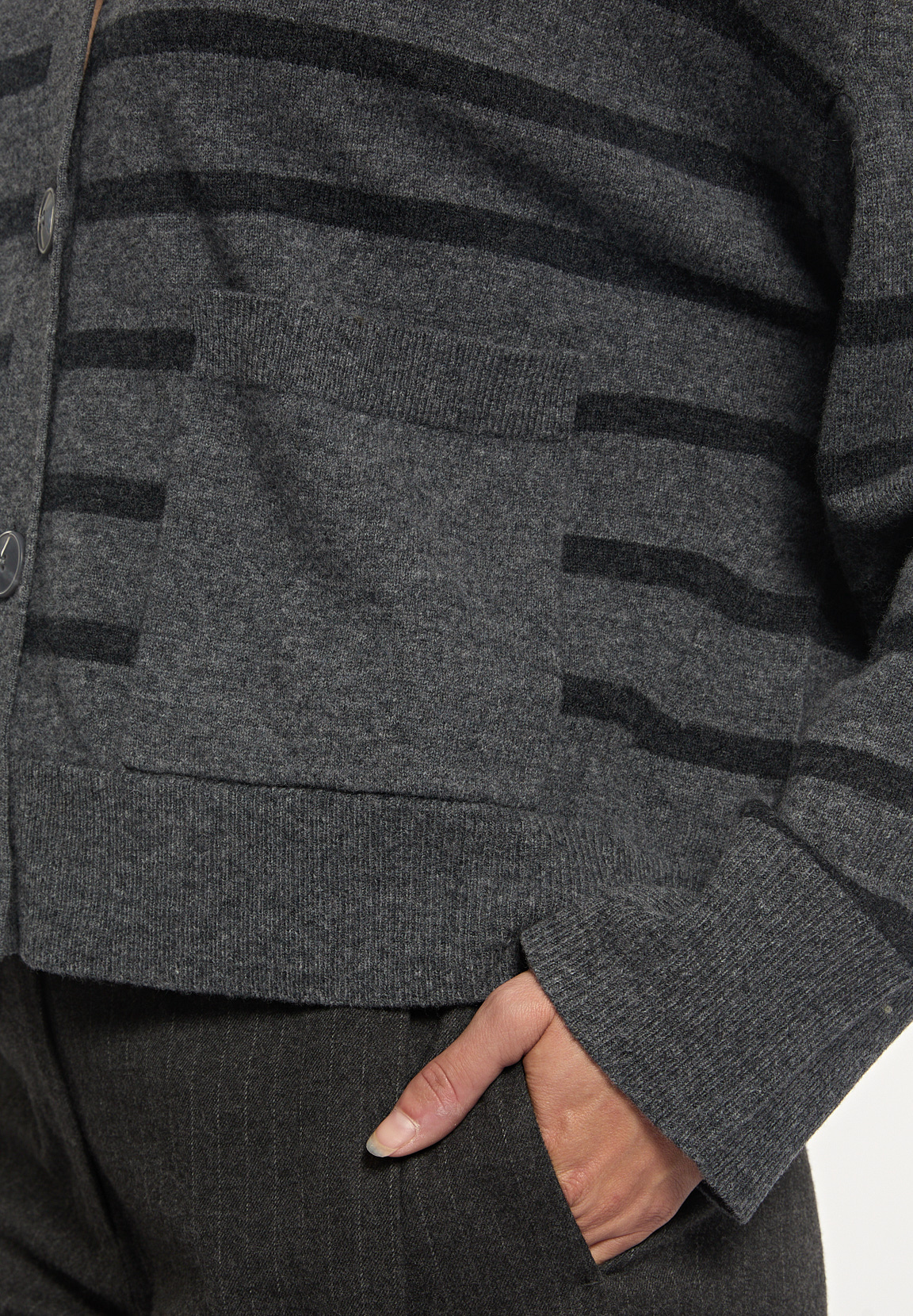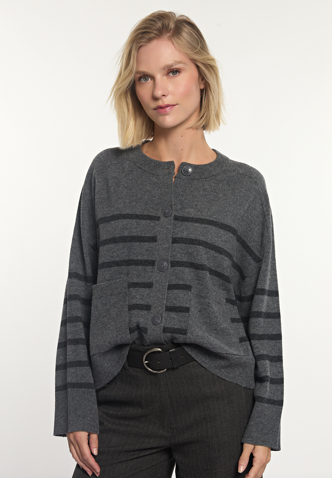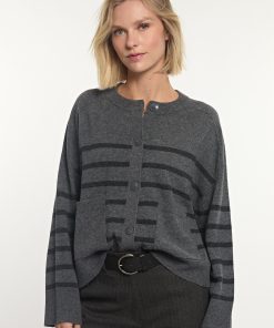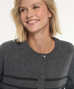 River Woods Women’s Merino Wool Striped Crew Neck Cardigan Grey | Grey