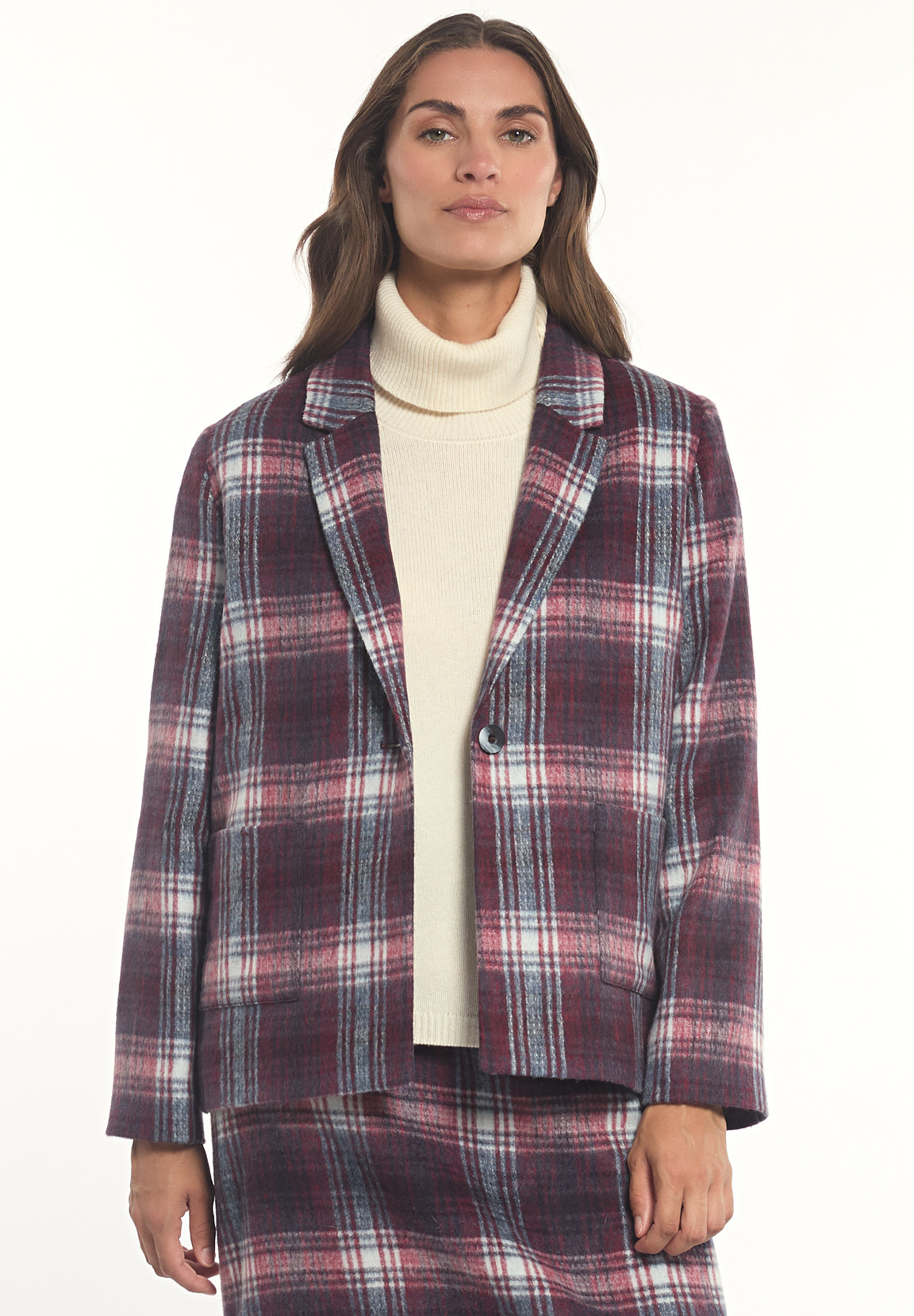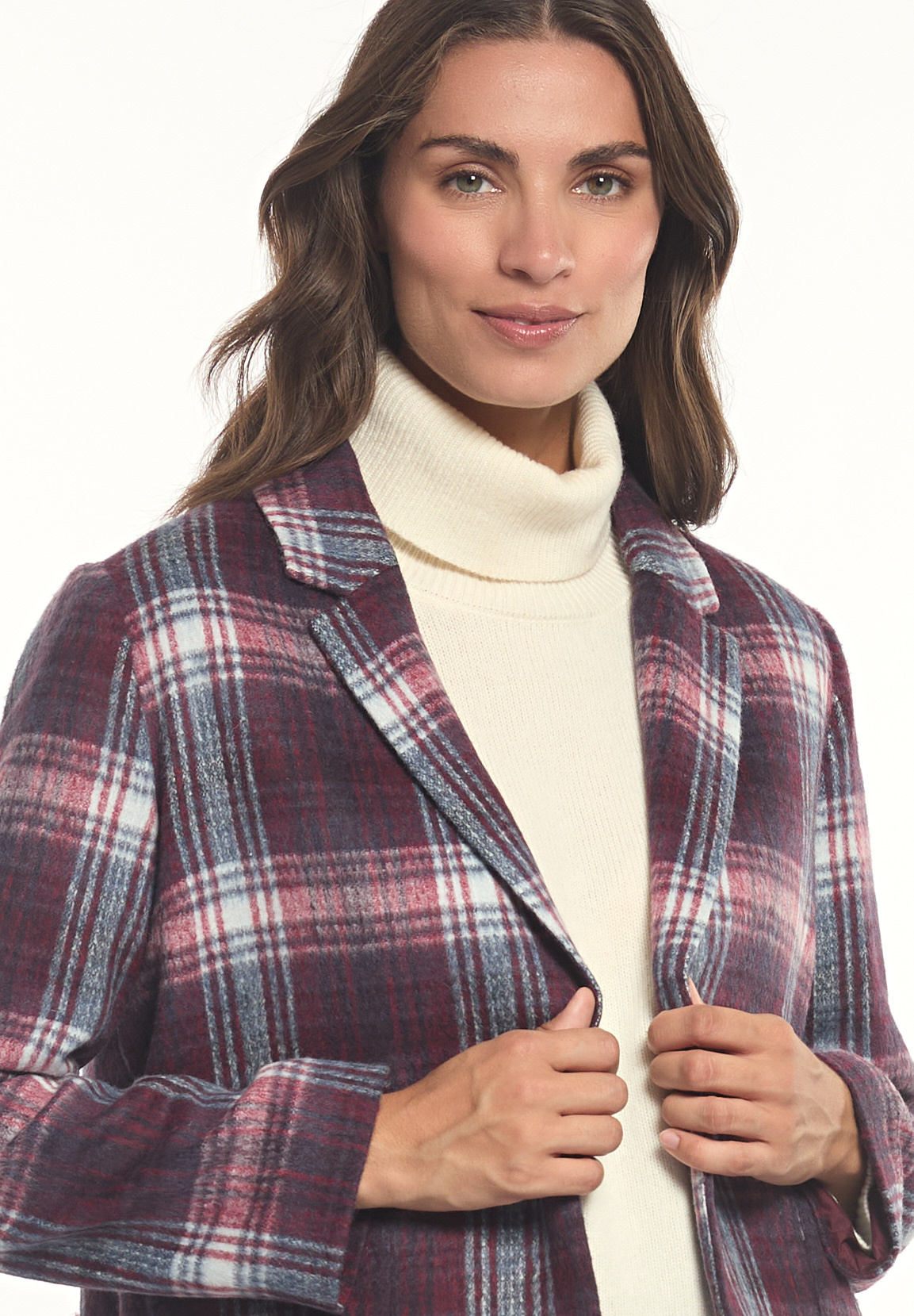 River Woods Women’s Woolen Checked Blazer Applied Pockets Pink/white | Pink