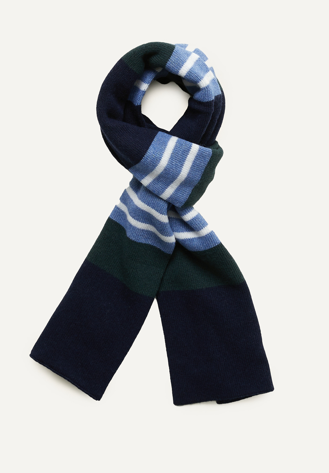 River Woods Wool-cashmere Striped Scarf Navy/cypress For Boys | Blue